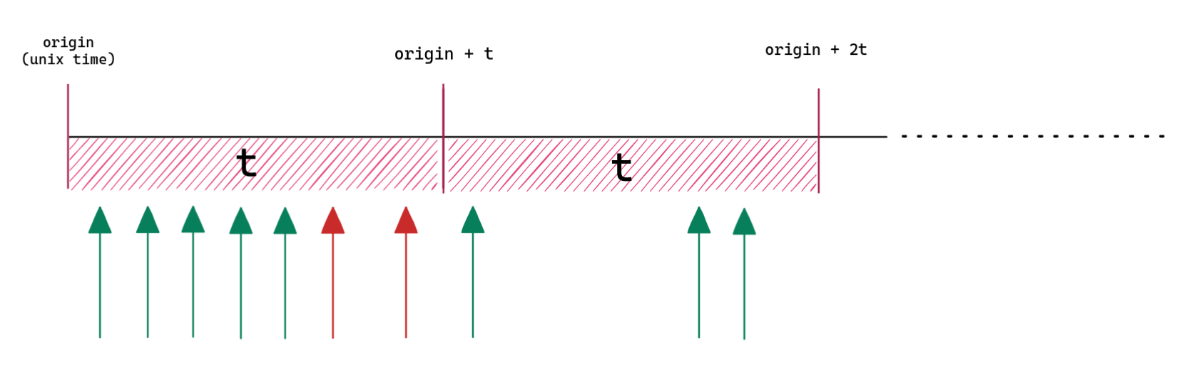 struct Rule {time_duration: Duration,rate: usize,}/// State[int(now / time_duration)] -> counted requeststype State = HashMap<u128, usize>;fn is_rate_limited(origin: SystemTime,current_time: SystemTime,rule: &Rule,state: &mut State,) -> bool {let current_time_ms = current_time.duration_since(origin).unwrap().as_millis();let time_duration_ms = rule.time_duration.as_millis();let state_idx = current_time_ms / time_duration_ms;let t_state = state.entry(state_idx).or_insert(0);*t_state += 1;*t_state > rule.rate}