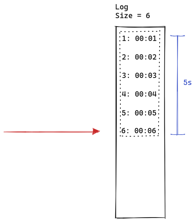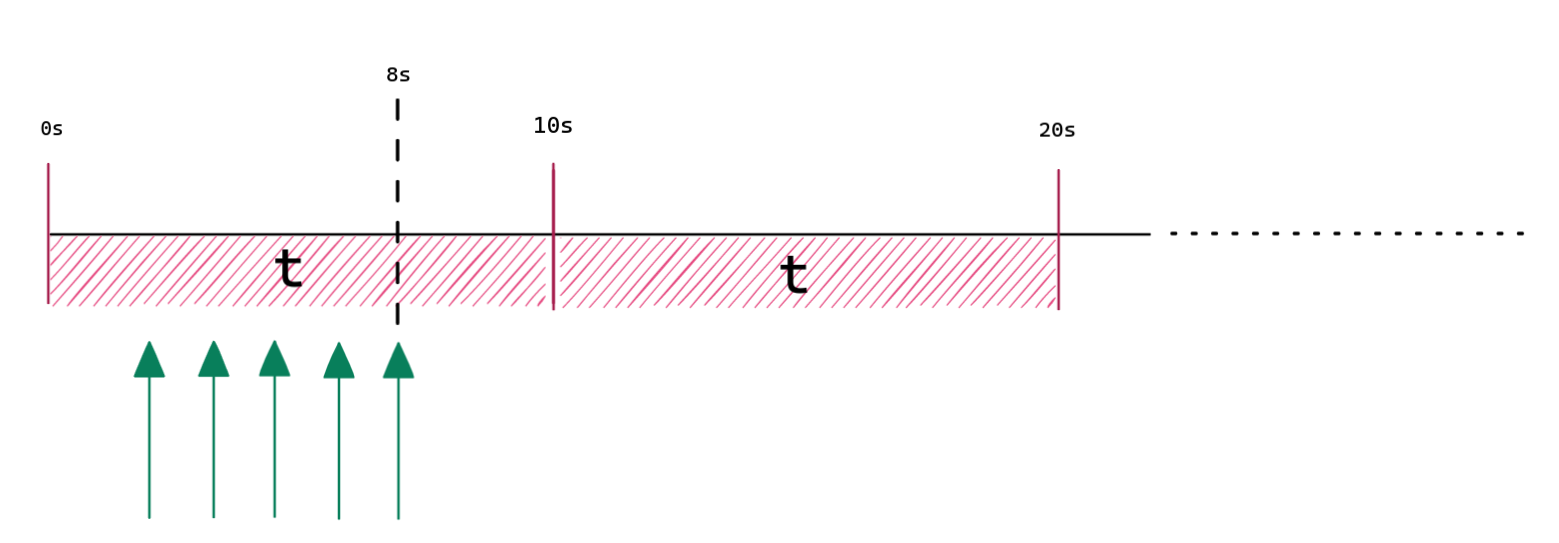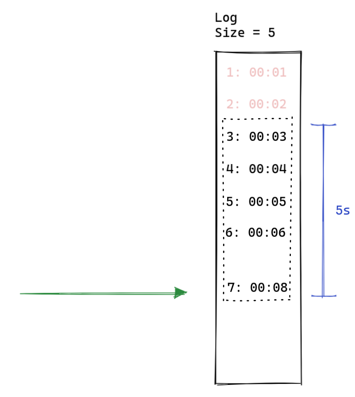 فرض میکنیم اول ۵ تا درخواست اومدن و مثل تصویر بالا توی ثانیه 8ام، آخرینشون رو شمردیم.