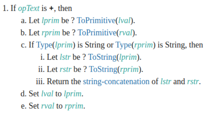 حالا چرا Dynamically Type برای پرفرمنس بده؟ بیایم به داکیومنت EcmaScript یک نگاهی بندازیم و ببینیم اپراتور + چیکار میتونه بکنه.